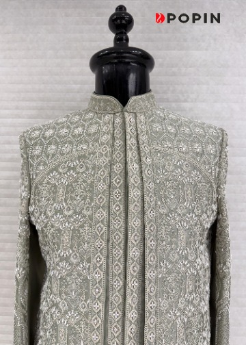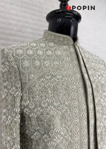 PISTA GREEN HEAVY EMBROIDERED INDO WESTERN SHERVANI